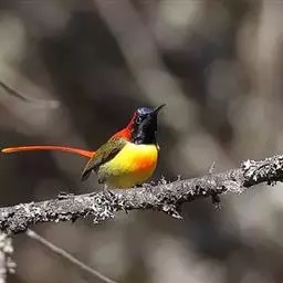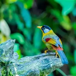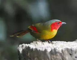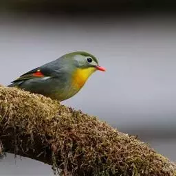 银耳相思鸟小型鸟类,体长14~18厘米。头顶黑色,耳羽银灰色,前额橙黄色;外侧飞羽橙黄色,基部朱红色,…