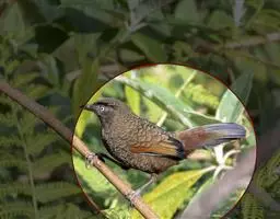 橙翅噪鹛:是噪鹛科、彩翼噪鹛属的中型鸟类,体长22-25厘米。头顶深葡萄灰色或沙褐色。上体灰橄榄褐色,…