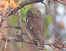 横斑腹小鸮:是鸱鸮科、小鸮属的一种鸟类。体长20厘米左右。面盘不明显,没有耳羽簇,皱领也不显著。…