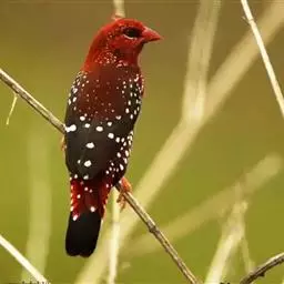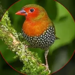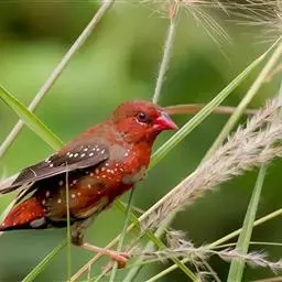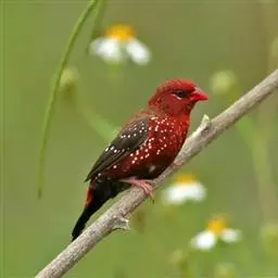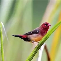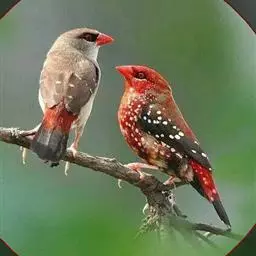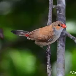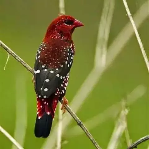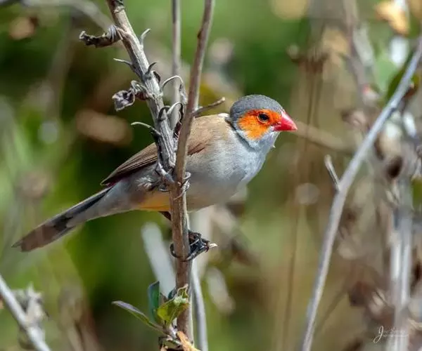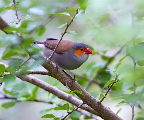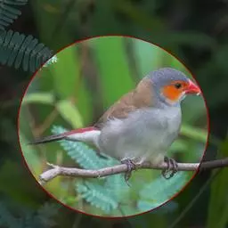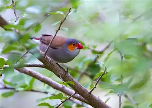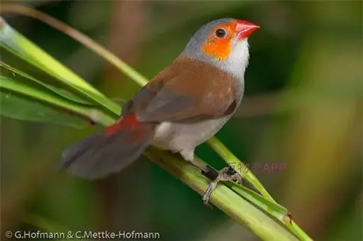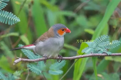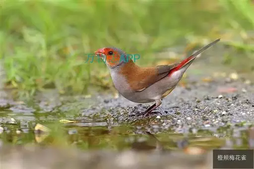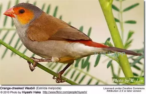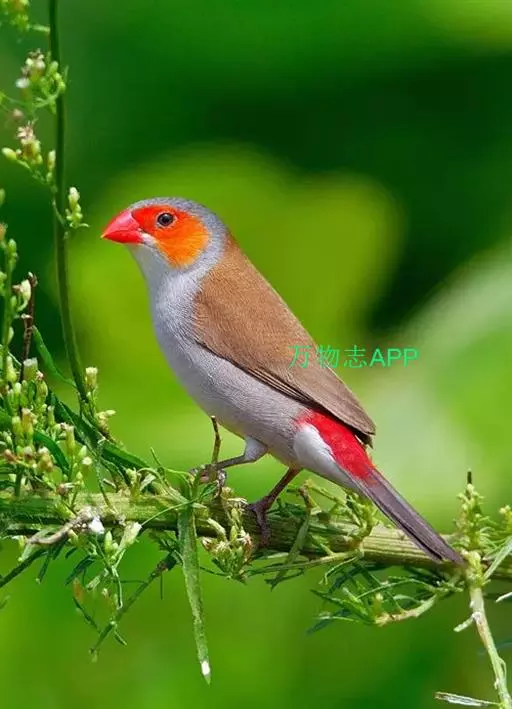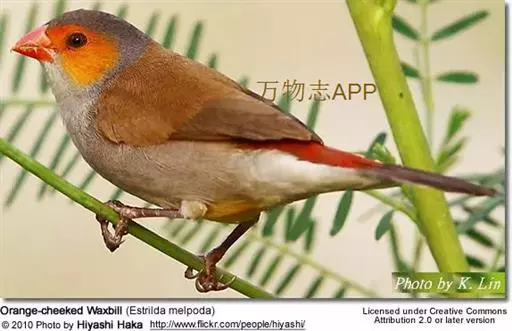 尾上覆羽:雄鸟具红色的尾上覆羽,此为橙颊梅花雀独有的特征