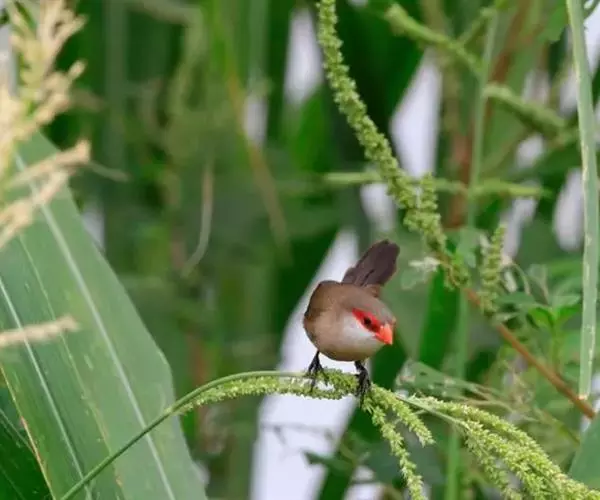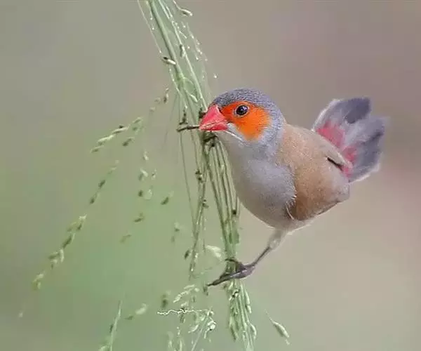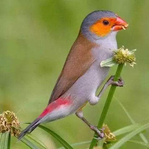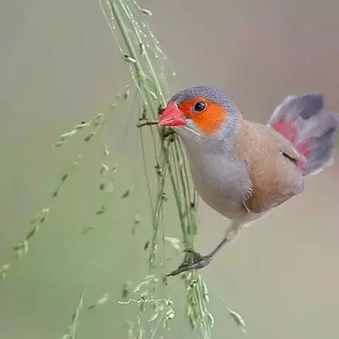 尾:尾部是橙颊梅花雀个体沟通的重要工具。雄鸟在向雌鸟求偶炫耀时,会前后轻弹其尾。