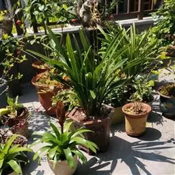 花盆以口小、盆深、底孔大的为佳。新从山上挖来的野生苗须植于瓦盆,2~3年后方可换入紫砂盆或瓷盆。先在盆底孔上盖以蚌壳、棕片等,上加粗砂、煤渣和木炭成馒头状,约占容量1/3。上加培养土约厚3~5厘米。一般不加基肥。然后将兰放入盆中,将根疏密排好,加拌好的细土至距盆2~3厘米处为止,将兰株稍稍提起,高度以假鳞茎上端与土面平齐为准,不可过浅或过深。轻压盆土,使土与根紧密接触,再用手指沿盆周围压实,以免浇水时造成空洞。最上层若敷一层青苔或碎瓦片,浇水不容易造成板结,并可减少水分蒸发。第一次浇水采用坐盆法,使盆吸足水分。最后将盆兰放于荫处约半月至1个月。这段时间须控制浇水,不可太湿。以后放置于半荫半阳,透风透气,早上能照到太阳处。盆台要高1米左右,不能摆在平台上,以防蚂蚁和蚯蚓从盆底孔中进入,影响兰花生长。培养土可用山上第一层山坡土,或用细沙与壤土3:7加腐殖质堆肥30%拌匀。培养土都要经过筛经消毒处理后使用。