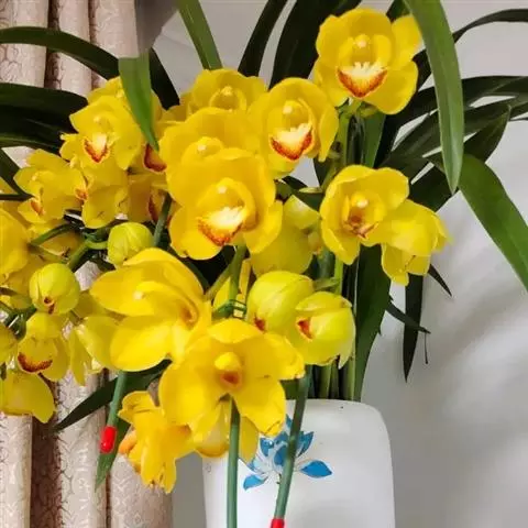 兰花(学名:Cymbidium ssp.):附生或地生草本,叶数枚至多枚,通常生于假鳞茎基部或下部节上,二列,带状或罕有倒披针形至狭椭圆形,基部一般有宽阔的鞘并围抱假鳞茎,有关节。总状花序具数花或多花,颜色有白、纯白、白绿、黄绿、淡黄、淡黄褐、黄、红、青、紫。