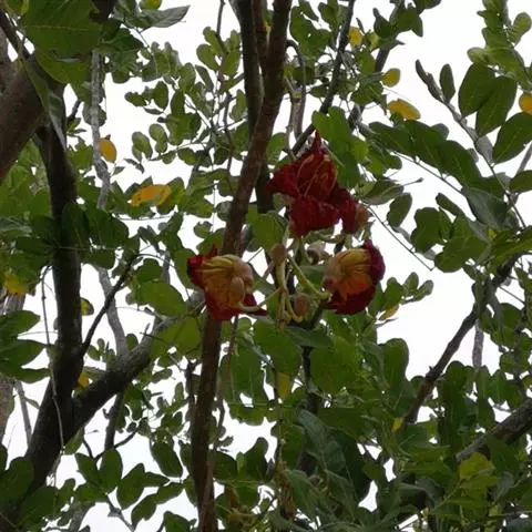火烧花 Kurz)是紫葳科火烧花属常绿乔木;树皮光滑;叶为奇数羽状复叶对生,小叶卵形或卵状披针形,…