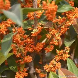 硬叶丹桂:叶椭圆形或椭圆状披针形、全缘或1/3或2/3有锯齿,边缘波状花淡香,花冠橙黄色。