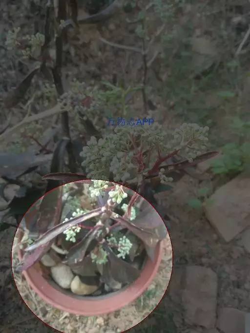 佛顶珠:灌木,叶波斜形或椭圆状波形,叶面明显呈“Ⅴ”形,内折深墨绿色,叶缘基部以上或1/3以上有粗齿,总梗发达,花黄白色,有微香,花瓣倒卵形。
