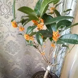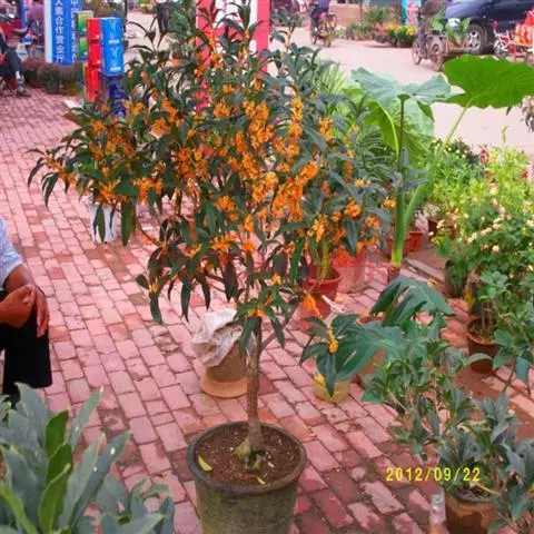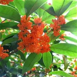 波叶金桂:叶椭圆形,边缘波状起伏,秋季可开花2-3次,着花紧密,有浓香,花冠金黄色,花瓣椭圆形。