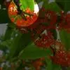 朱砂丹桂:叶卵状椭圆形,坚挺金缘,秋季开花2次,花淡香,花冠深红色,花瓣圆形。