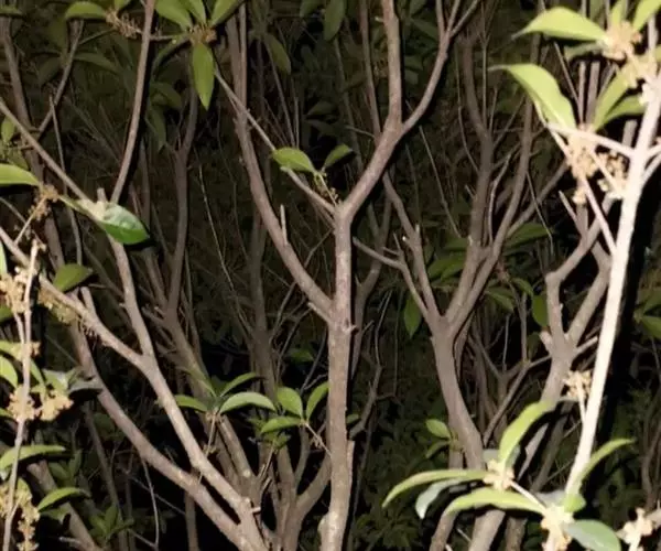 柳叶桂:小乔木或灌木状,树冠长圆形、圆球形,分枝较多。叶椭圆状披针形或长椭圆形,全缘。叶先端渐尖,稀先端有少数锯齿。9月中下旬至10月上旬开花,每芽有花5-7朵,花朵稀疏,花银白色至黄白色、淡黄色,浓香。