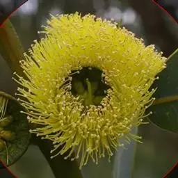 花单朵,稀2朵聚生于叶腋;花梗长1.5-3厘米,常向下弯垂,初被白色长柔毛,以后无毛,中部具小苞片;小苞片卵状心形或心形,长约1厘米,绿色,近无柄;花被管中部马蹄形弯曲,下部管状,长5-7厘米,直径1.5-2.5厘米,弯曲之处至檐部与下部近相等,外面粉红色,具绿色纵脉纹;檐部圆盘状,直径4-6厘米或更大,内面暗紫色而有稀疏乳头状小点,外面绿色,有紫色条纹,边缘浅3裂,裂片平展,阔三角形,顶端钝而稍尖;喉部圆形并具领状环;花药长圆形,成对贴生于合蕊柱基部,并与其裂片对生;子房圆柱形,长1-2厘米,具6稜,被白色长柔毛;合蕊柱顶端3裂;裂片顶端尖,边缘向下延伸并向上翻卷,皱波状。