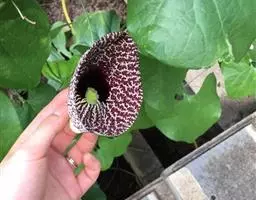 巨花马兜铃花朵的主要部分只有一片,看起来好像是一个巨大的、带有纹理的兜状物,而不像普通的花朵那样拥…