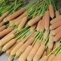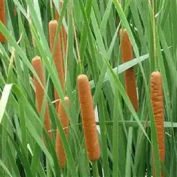 香蒲 香蒲含纤维量高的叶来编制的草袋、草包、草席、坐垫、茶垫、提篮等手工编织品出口国外,能产生较好的经济效益。香蒲全草为良好的造纸原料,含纤维量为35%-60%,出麻率在38.3%以上;用碱煮法可把叶和叶鞘加工成人造棉;以7-8月收割为宜,9月份采集的鲜草,含水分81.78%、粗蛋白质3.16%、粗纤维4.06%;干燥全株含水10.20%、半纤维素16.6%、纤维素56.2%。脱胶后的纤维可织麻袋和搓绳,其拉力与质量均超过稻草绳;成熟的雌花序称蒲棒,可蘸油或不蘸油用以照明;雌花序上的毛称蒲绒,几乎为纯纤维,常用作枕絮。