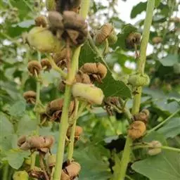 咖啡黄葵 Moench)亦称黄秋葵,是锦葵科一年生草本植物。茎圆柱形,疏生散刺。叶掌状,裂片阔至狭,…