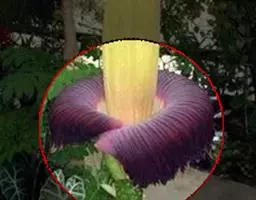花序柄长25~30(~35)厘米,长于叶柄。佛焰苞绿色或绿白色,管部狭圆柱形,长1.5~2厘米;檐部长圆形,绿色,有时边缘青紫色,长4~5厘米,宽1.5厘米,钝或锐尖。肉穗花序:雌花序长2厘米,雄花序长5~7毫米,其中间隔3毫米;附属器绿色变青紫色,长6~10厘米,直立,有时“S”形弯曲。