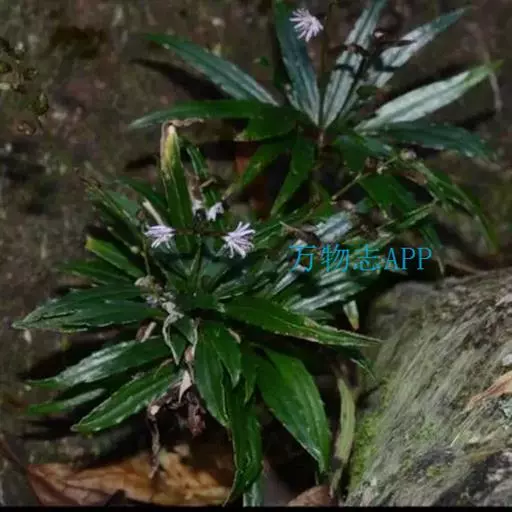 多年生草本。根状茎短,直,圆柱状,稀略弯曲,直径4-5毫米,根颈被黄褐色绒毛;须根极密,长可达20余厘米。茎直立,单一或少有自根颈发出数枝,高30-60厘米,基部直径2-4毫米,下部疏被短柔毛或脱落变无毛,叶丛中及叶腋内被毛较长而密。叶聚生于茎的中部,通常离基13-25厘米,下方数片节间长1-15厘米,余者密集的其节间长仅2-3毫米,叶片纸质,狭椭圆形或披针形,长5-9.5厘米,宽5-13毫米,顶端长渐尖,中脉延伸复形成长近1毫米的凸尖头,基部渐狭,略下延,边缘背卷,每侧向两端各具6-8个、长1-1.5毫米的芒状细齿,上面深绿色,背面淡绿色,两面均无毛;基出脉3条,两面均凸起,于下面尤著,两侧的1对上升直达叶片顶部,中脉上部具极少、不规则的柔弱侧脉,网脉无;叶柄长1-1.5厘米,基部被疏柔毛。头状花序具被短柔毛的柄,内含小花3朵,于茎顶排成圆锥花序;圆锥花序轴被短柔毛,分枝短,柔弱,基部具钻形或狭三角形的苞叶;总苞圆筒形,直径2-3毫米;总苞片约7层,无毛,背部有纵纹,外1-3层卵形,长1-2毫米,宽0.8-1毫米,顶端钝,中层卵状披针形,长3-5毫米,宽1.5-2毫米,顶端亦钝,最内层狭椭圆形,长10-12毫米,宽约1.8毫米,顶端渐尖;花托狭,无毛,直径约0.8毫米。花全部两性,花冠白色,长约9毫米,花冠管纤细,管口上方5深裂,裂片偏于I侧,长圆形,约与花冠管等长;花药顶端钝圆或近截平,长约5毫米,基部的尖尾长为花药的2/5;子房倒锥形,密被粗毛,长约2.5毫米,花柱分枝伸出于药筒之外,内侧扁,顶端钝圆,长不足0.5毫米。瘦果圆柱形,密被粗毛,长约3毫米。冠毛淡黄色或污黄色,羽毛状,长约8毫米,基部稍联合。花期7-9月。