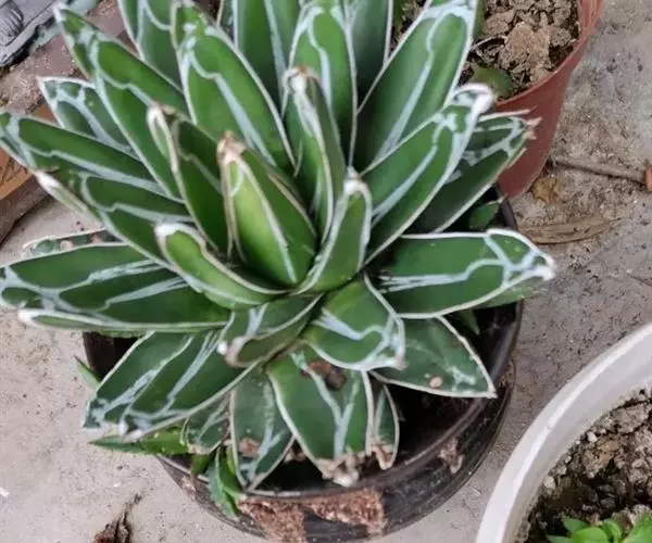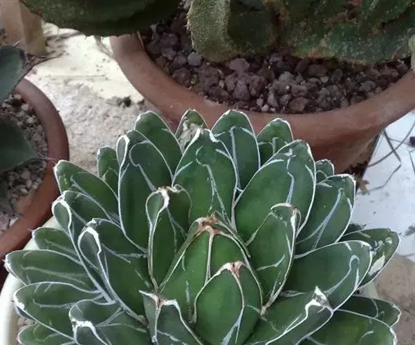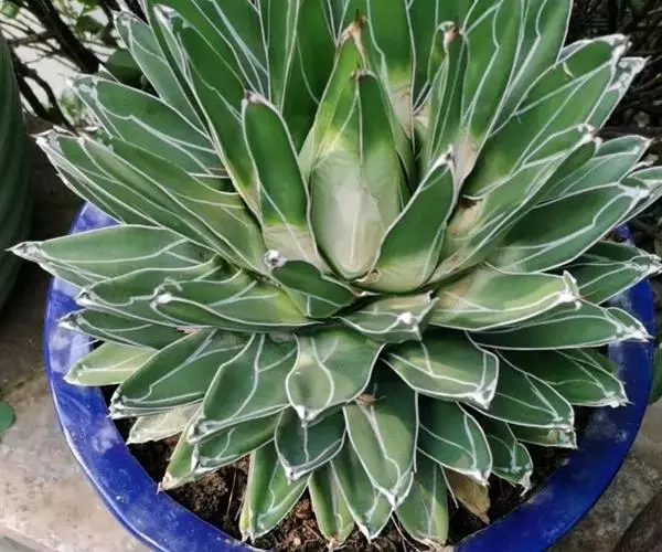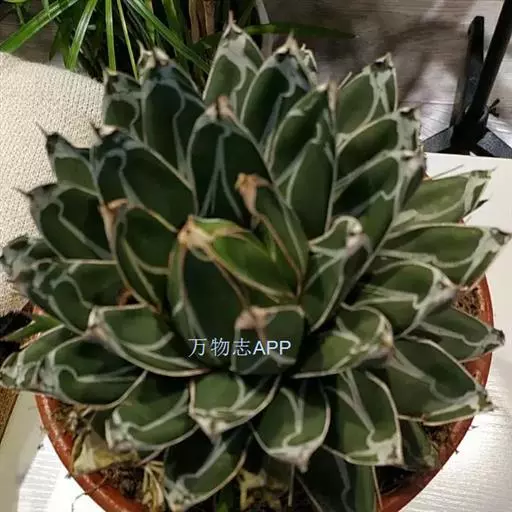 皇后龙舌兰是天门冬科、龙舌兰属多年生草本多浆植物。无主茎,叶丛生,莲座状,株幅40厘米。叶较多,…