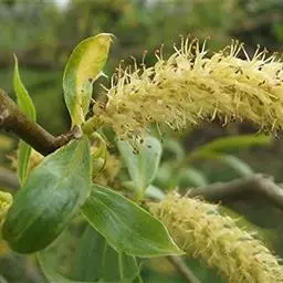 腺柳小乔木。叶椭圆形、卵圆形至椭圆状披针形,早落,萌枝上的很发育。花序梗和轴有柔毛;花丝长,花药黄色,…