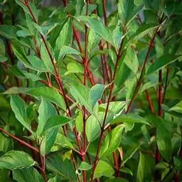 灌木,高1-3米。树皮灰绿色。小枝淡黄色或淡红色,无毛,有光泽。芽卵形,尖,黄褐色,无毛。