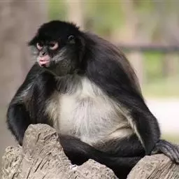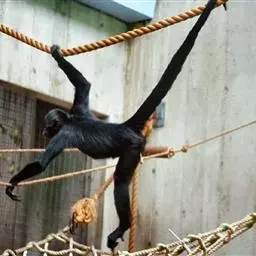 蛛猴属:共有7种。头体长约35-66厘米。头又圆又小,四肢细长,手没有拇指。…