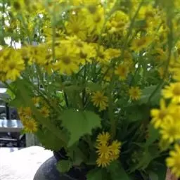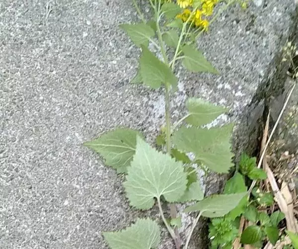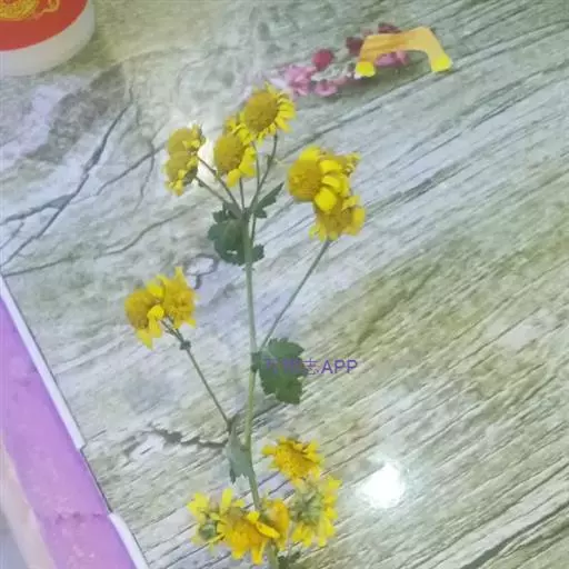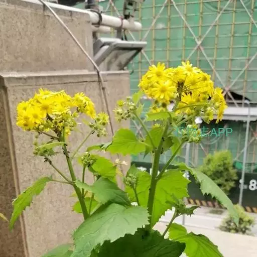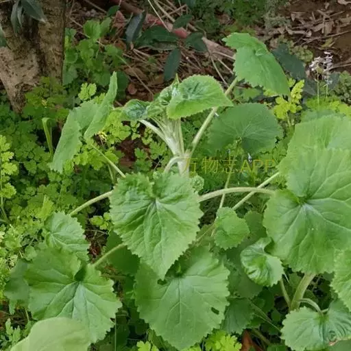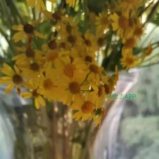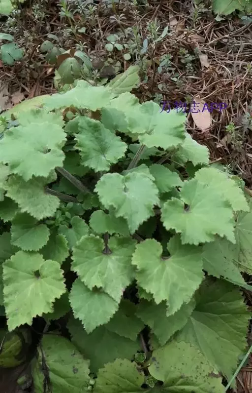 本品长20-80cm,茎圆柱形,具纵条纹,下部被蛛丝状绵毛,上部近无毛,上部多分枝。表面灰绿色。断面不整齐,近白色。叶片草质或近膜质,皱曲或破碎,完整者平展后为心状圆形或阔卵状心形,叶面淡黄绿色,近无毛,背面灰绿色,密被白色蛛丝状绵毛;叶柄长1.5-6cm。茎、枝顶端有头状花序组成的伞房状花序,总花序梗纤细,长1-2.5cm;总苞宽钟形,长3-4mm;花黄色,舌状花1层,舌片顶端全缘或3齿裂;管状花多数,长5-6mm。偶见倒卵状圆柱形瘦果,长约1mm,具白色长冠毛。气微,味苦。以茎、枝多,叶完整,色绿者为佳。