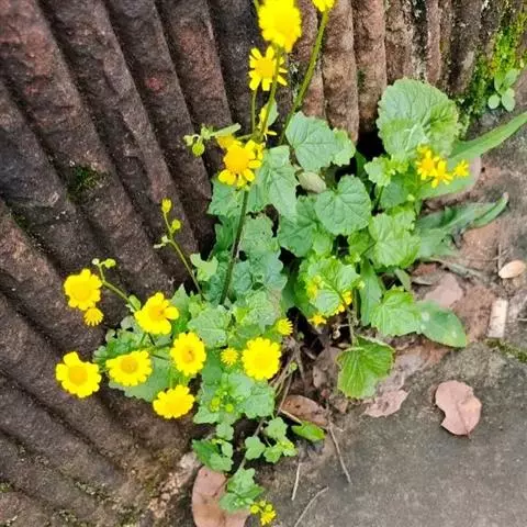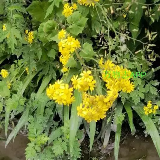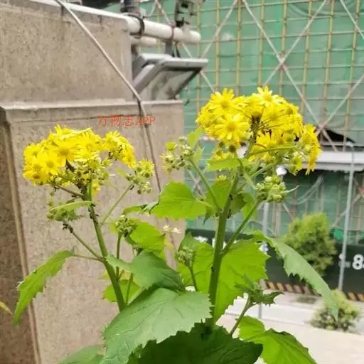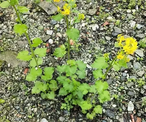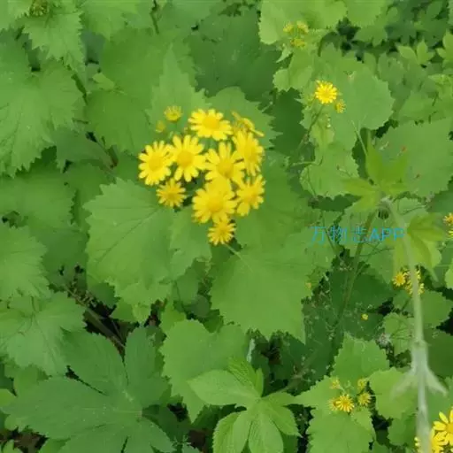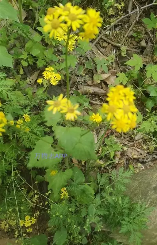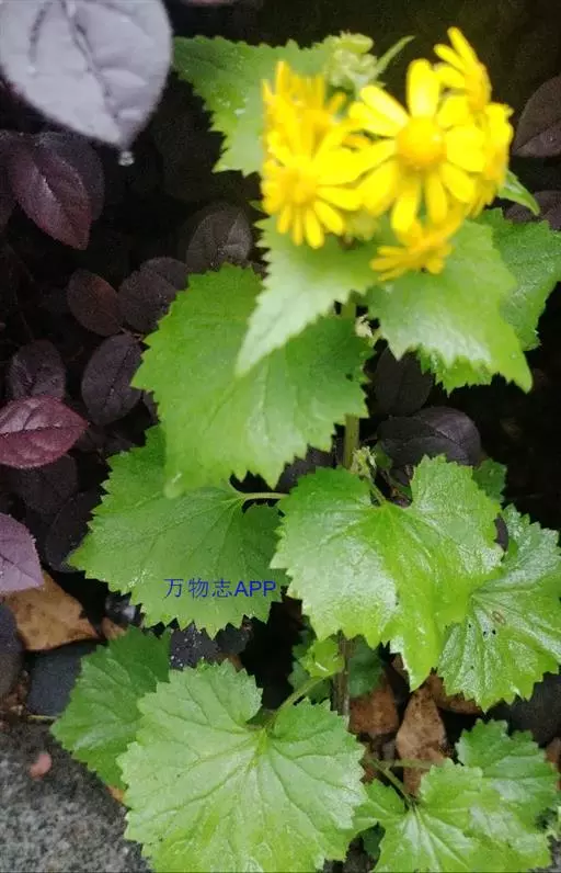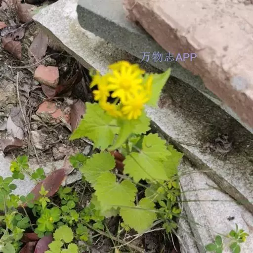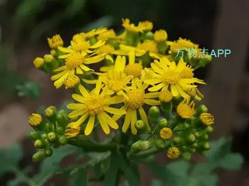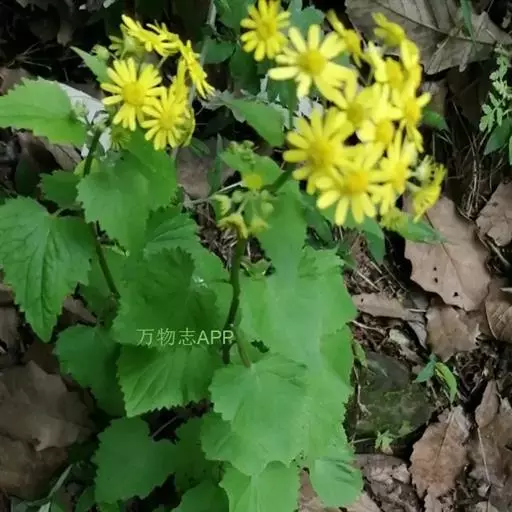 一年生或二年生草本,高30-80厘米。茎直立,单一或稍有分枝,具白色软毛或近乎光滑。基生叶丛生,花后脱落,柄长3-6厘米,基部具鞘;叶片肾圆形,长约2.5厘米,宽约3厘米,边缘具不整齐的三角形齿,上面稍有细毛,下面有白色蛛丝毛密生;中部叶有短柄,叶片肾圆形至广卵状心形,长3.5-4厘米,宽4-4.5厘米,先端短尖,被毛同基生叶;上部叶宽卵形,较小。春、夏季开花,头状花序小而多数,具细梗,排成伞房状;总苞钟形,基部无小苞,总苞片条状披针形,边缘膜质;缘花舌状,1层,舌片橘黄色,椭圆形,先端全缘或3齿裂;中央管状花多数,先端5裂。瘦果圆筒形,具纵棱,稍有细毛;冠毛白色,长约2-3毫米。