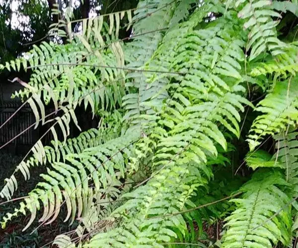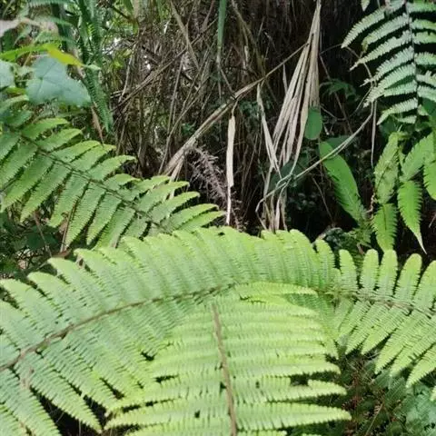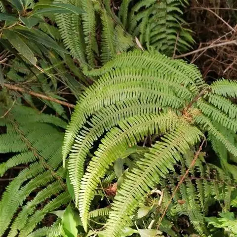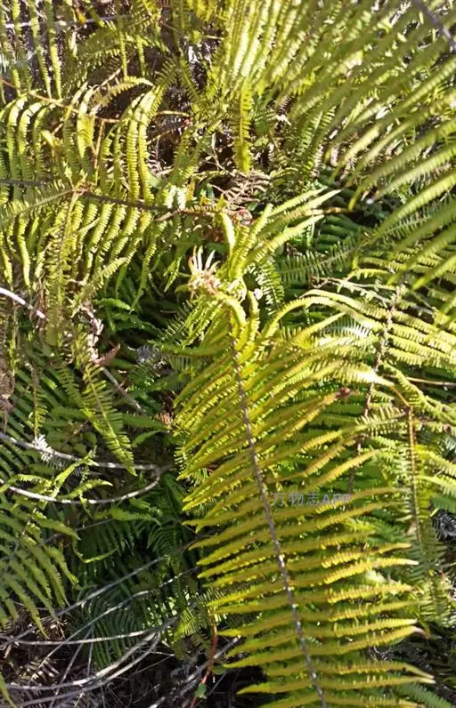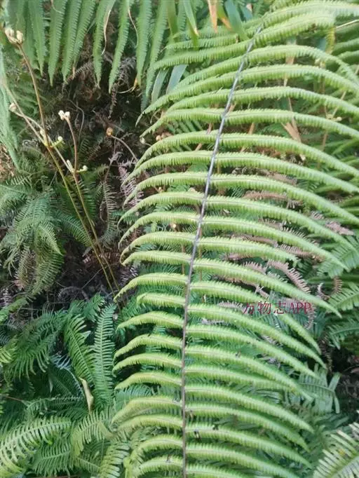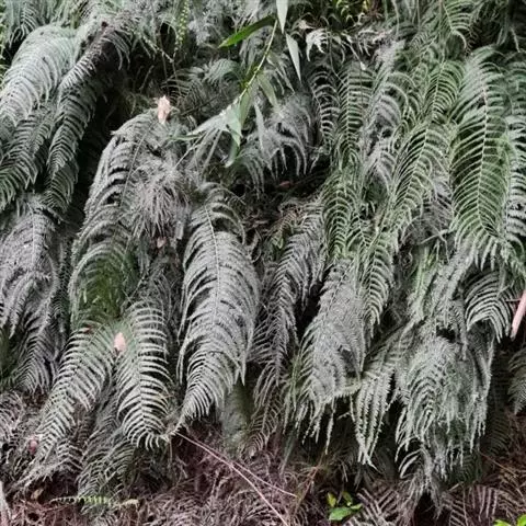 里白属于蕨类植物,植株高达1.5m或更高。根状茎横走,被鳞片。叶柄长约60cm;叶柄有1个密被棕色鳞片的大顶芽,不断发育形成新羽片;2回羽裂,1回羽片对生,小羽 片互生,平展,与羽轴几成直角。叶纸质,上面绿色,下面灰白色。