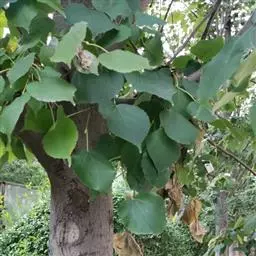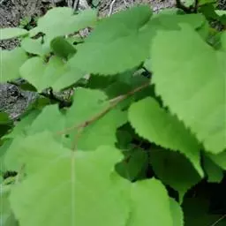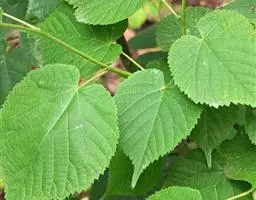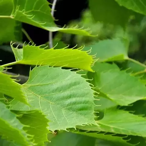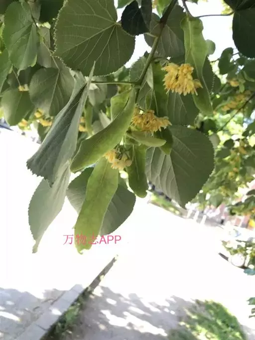 辽椴 高20米,直径50厘米,树皮暗灰色;嫩枝被灰白色星状茸毛,顶芽有茸毛。叶卵圆形,长8-10厘米,宽7-9厘米,先端短尖,基部斜心形或截形,上面无毛,下面密被灰色星状茸毛,侧脉5-7对,边缘有三角形锯齿,齿刻相隔4-7毫米,锯齿长1.5-5毫米;叶柄长2-5厘米,圆柱形,较粗大,初时有茸毛,很快变秃净。