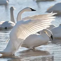 黑嘴天鹅是北美最大的原生鸟类,其体重和形态也是生活在地球上最大的水禽。全身洁白,鸟喙黑色,颈特长,…