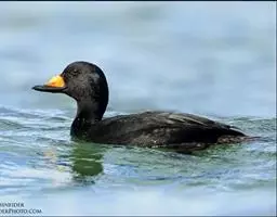 黑海番鸭(学名:Melanitta nigra)为雁形目鸭科的鸟类,俗名美洲黑凫,体长44-54厘米,翼展79-90厘米,体重1300-1500克,寿命16 年。是矮胖型深色海鸭。雄鸟全黑,嘴基有大块黄色肉瘤。雌鸟烟灰褐色,头顶及枕黑色,脸和前颈皮灰黄色。飞行时,两翼近黑,翼下羽深色。属于潜水鸭类。多栖息于海洋、海港以及河口。极善游泳和潜水,在陆地上行走就显得笨拙,除繁殖期外多见于海洋中,主要以贝类为食。分布于北半球较冷地区、欧洲、北美洲、亚洲、非洲,包括中国的江苏、福建等地。