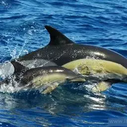 真海豚,身体细而流线型。体色十分复杂而独特,通常十字交叉型,黄褐色在前灰色在后,背面黑色向下延伸,…