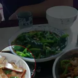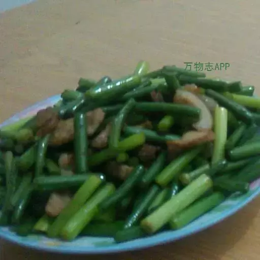 2、豆角200克、猪肉150克、姜丝、食盐、五香粉、鸡精、麻油各少许。