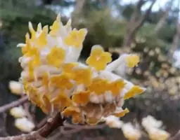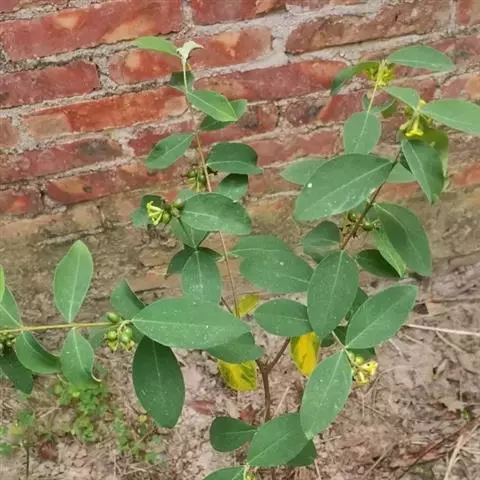 芫花是瑞香科瑞香属植物,别名:药鱼草、老鼠花、闹鱼花、头痛花、闷头花、头痛皮、石棉皮、泡米花、泥秋树、黄大戟、蜀桑、鱼毒,高0.3-1米,多分枝;树皮褐色,无毛;小枝圆柱形,细瘦,干燥后多具皱纹,幼枝黄绿色或紫褐色,密被淡黄色丝状柔毛,老枝紫褐色或紫红色,无毛。叶对生,稀互生,纸质,卵形或卵状披针形至椭圆状长圆形,先端急尖或短渐尖,基部宽楔形或钝圆形,边缘全缘,上面绿色,干燥后黑褐色,下面淡绿色,干燥后黄褐色,幼时密被绢状黄色柔毛,老时则仅叶脉基部散生绢状黄色柔毛,花柱短或无,柱头头状,橘红色。果实肉质,白色,椭圆形,包藏于宿存的花萼筒的下部,花期3-5月,果期6-7月。图片取自中国植物图库