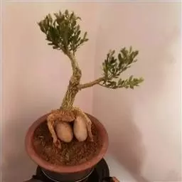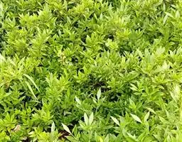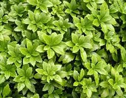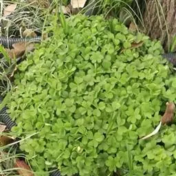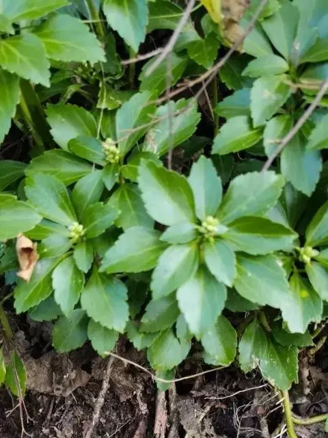 板凳果常绿亚灌木,铺地生长。株高20cm,冠径25cm。每个茎顶端生3~6片叶,叶卵形,边缘有锯齿,…