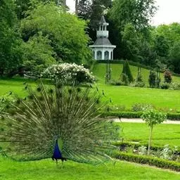 活动:双翼不发达,不善飞行,而脚强壮有力,善疾走奔跑,在逃窜时多为大步飞奔,觅食一般在清晨和黄昏,清晨来到溪边喝水、边清洗羽毛,然后一起去树林中觅食,炎热的正午则在荫凉的林中休息,黄昏再次采 食。晚间则飞上树枝休息。行动敏捷,脚强健,善奔,有一定高飞能力,在繁殖期间公孔雀有求偶行为并“开屏”,母孔雀也能用喙吻公孔雀的头、脸部。