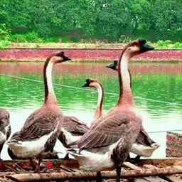 狮头鹅是雁形目鸭科雁属鸟类。头大颈粗,前躯较高,呈方形;全身背面羽毛及翼羽呈棕色,…