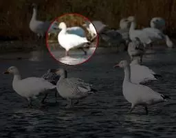 雪雁是鸭科雁属鸟类,雁属中体形大,个体重的鸟类。羽毛洁白,翼角黑色。飞行时双翼拍打用力,振翅频率高。…