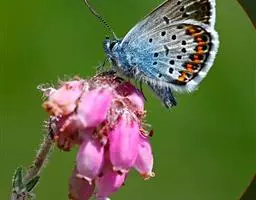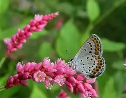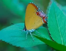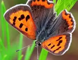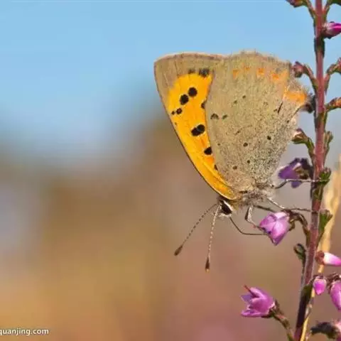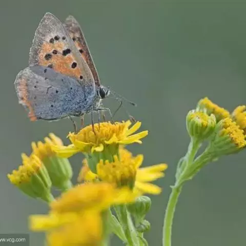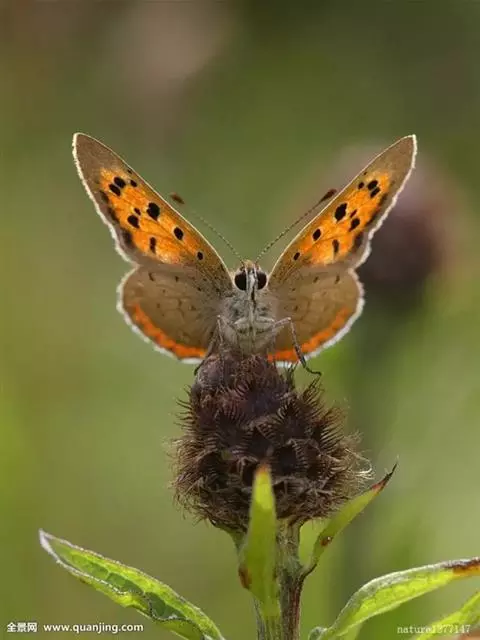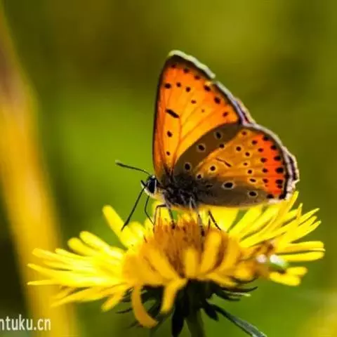橙灰蝶Lycaena dispar Hauorth,鳞翅目、灰蝶科。这类蝴蝶雌雄异型,雄蝶前翅翅面…