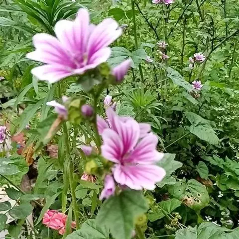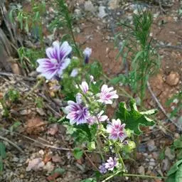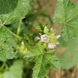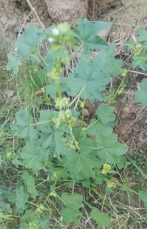野葵,叶互生,有长柄,柄长生毛茸,叶大,圆状肾形,5-7掌状裂,裂片三角形,边缘有细锯齿。叶腋簇生小花,花瓣5,端凹入,花白色有紫晕或浅红色,花柱丝状白色。果扁圆形,光洁,果熟时各心皮彼此分离。花期7-9月。可作绿化材料。幼苗滑嫩可食。全草或种子、茎及根可入药。茎皮纤维可代替麻用。种子药用有利水滑窍,润便利尿,下乳汁,去死胎;又可拔毒排脓和疗疮疖等。
