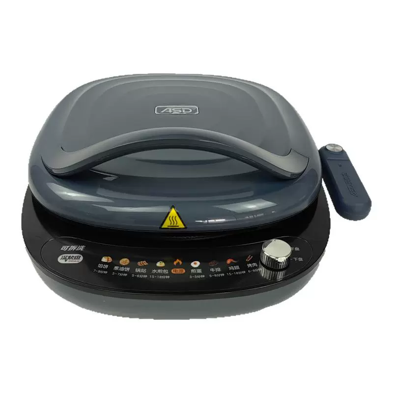 3、产品工作过程中,严禁用手触摸发热盘及产品表面,以免烫伤。产品为悬浮式设计,电饼铛高度因食物厚度而自动调节。