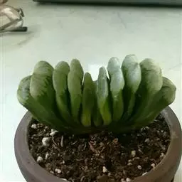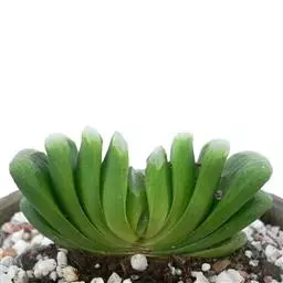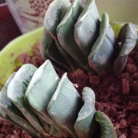 多年生肉质草本植物,植株初 为单生,以后逐渐呈群生状。肉质叶呈紧凑的莲座状排列,叶片肉质,相对玉露来说叶片更尖长,翠绿色,上半段有透明或半透明状窗口。