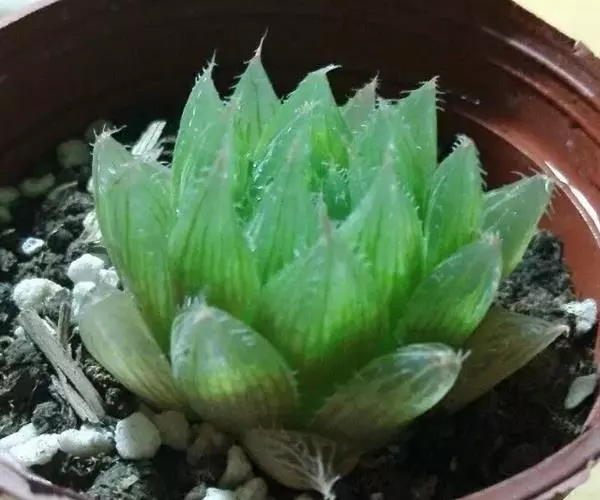 三角琉璃莲也称三角玉露(学名:Haworthia cymbiformis var. triebnet poelln),是阿福花科瓦苇属的多肉植物,原产南非。植株矮小,株高一般5~6厘米。叶形叶色较美,有一定的观赏价值。