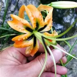 岷江百合是百合科百合属的多年生鳞茎草本植物。鳞茎宽卵圆形,鳞片披针形,茎有小乳头状突起;狭条形叶散生,…
