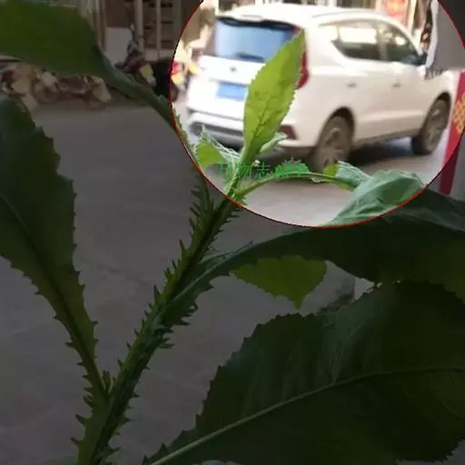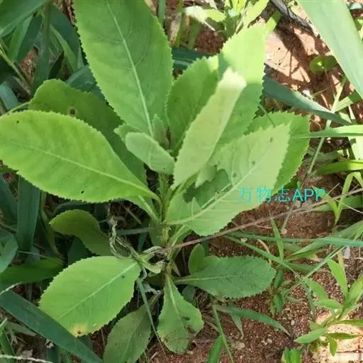 翼齿六棱菊 7) 厘米,基部长渐狭或渐狭,沿茎下延成茎翅,顶端短尖或钝,两面疏被柔毛和杂以腺体,中脉和7-10对侧脉在下面稍凸起,网脉略明显;上部叶小,倒卵形或长圆形,长2-3厘米,宽5-10毫米,顶端钝或短尖,边缘锯齿较小。