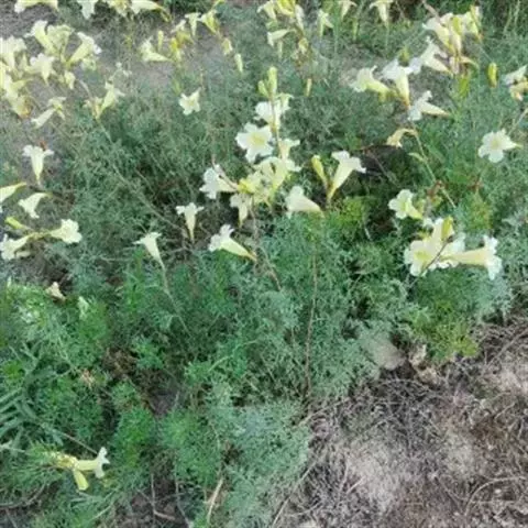 黄花角蒿为紫葳科年生至多年生草本植物,具分枝的茎,高达80厘米,根近木质而分枝。…