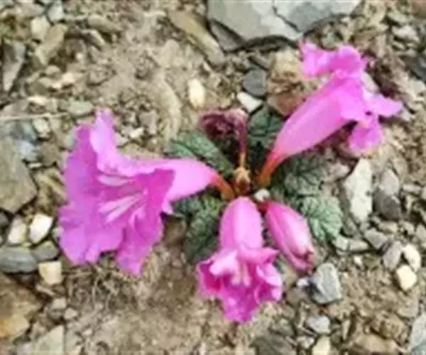 藏波罗花为紫葳科矮小宿根草本植物。 生于海拔3600-5000 米的高山沙质草甸及山坡砾石垫状灌丛中,喜光、耐寒、耐瘠薄。为高山花卉,短总状花序顶生,花冠紫红色,稀粉红色,花冠管橘黄色。具有较好的观赏性。植物的根可药用,具有滋补强壮作用。