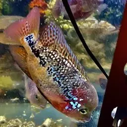 红魔鬼鱼,学名为厚唇双冠丽鱼,也叫火鹤鱼,是慈鲷科丽体鱼属下的一种观赏鱼类。血鹦鹉鱼的父本鱼种。…