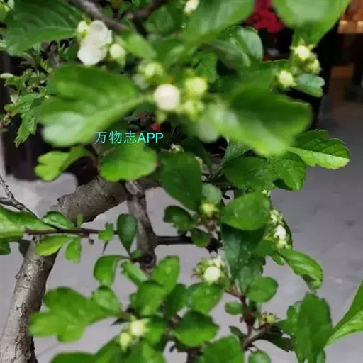 伞房花序,直径2-2.5厘米,具花5-7朵,总花梗和花梗均被柔毛。花梗长约1厘米;苞片草质,披针形,条裂或有锯齿,长8-12毫米,脱落很迟;花直径约1.5厘米;萼筒钟状,外被长柔毛,萼片三角卵形,长约4毫米,约与萼筒等长,先端尾状渐尖,全缘或有齿,内外两面均具柔毛;花瓣近圆形或倒卵形,长6-7毫米,白色,基部有短爪;雄蕊20;花药红色;花柱4-5,基部被绒毛。果实近球形或扁球形,直径1-1.2厘米,红色或黄色,常具有宿存反折萼片或1苞片;小核4-5,内面两侧平滑。花期5-6月,果期9-11月。