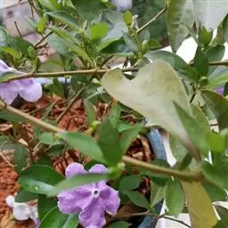 二、温度:鸳鸯茉莉喜半阴、通风良好的环境,不耐强光直射,抗风力较差,清明前后移至室外向阳避风处培养。夏季置于通风凉爽处或遮光50%的荫棚下管理,防止阳光直射,否则叶片易发黄、发焦。由于它原产于热带地区,喜欢高温高湿环境,因此对冬季的温度的要求很严,当环境温度在10℃以下停止生长,在霜冻出现时不能安全越冬。 秋季霜降前后移回室内培养,放置于光线较强处。