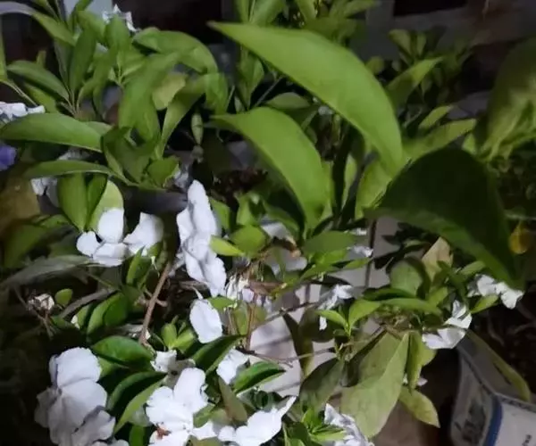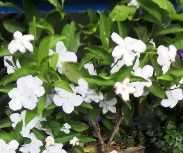 四、肥水:对于盆栽的植株,除了在上盆时添加有机肥料外,在平时的养护过程中,还要进行适当地肥水管理。春、夏、秋三季是鸳鸯茉莉的生长旺季,要做好肥水管理。对于地栽的植株,春夏两季根据干旱情况,施用2~4次肥水:先在根颈部以外30~100公分开一圈小沟(植株越大,则离根颈部越远),沟宽、深都为20公分。沟内撒进25~50斤有机肥,或者1~5两颗粒复合肥(化肥),然后浇上透水。入冬以后开春以前,照上述方法再施肥一次,但不用浇水。
