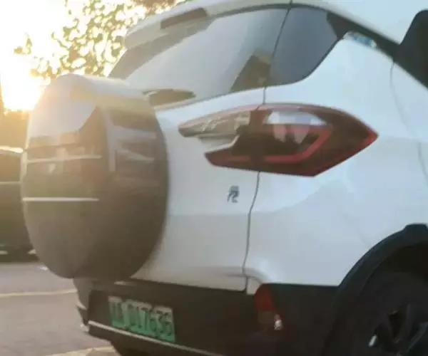 车尾部最明显是外挂式备胎,五条镰刀样式的装饰,给比亚迪元的运动气息增色不少。尾灯造型好像螃蟹的一对钳子。安装方式风格类似福特翼博。另外4.9秒的尾部标识同样出现在尾部,代表该车的0-100km/h所需的加速时间。